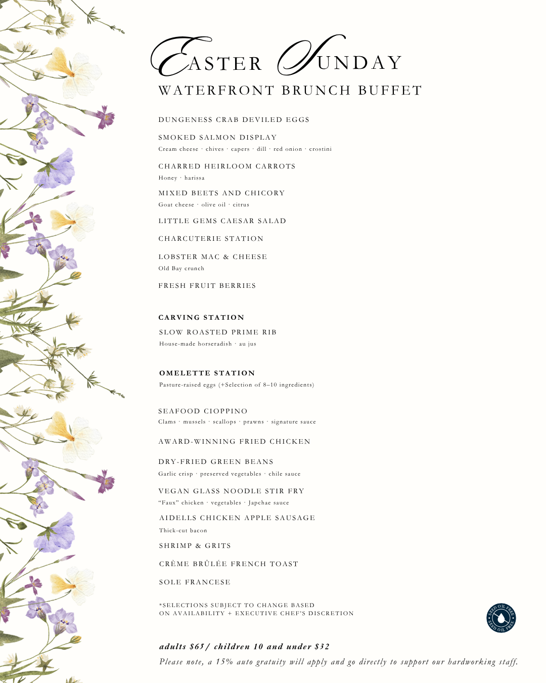 Join us for a Premium Easter Sunday $65 Brunch Buffet April 5th, featuring Prime Rib, Lobster Mac + Cheese & so much more!